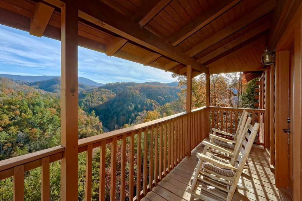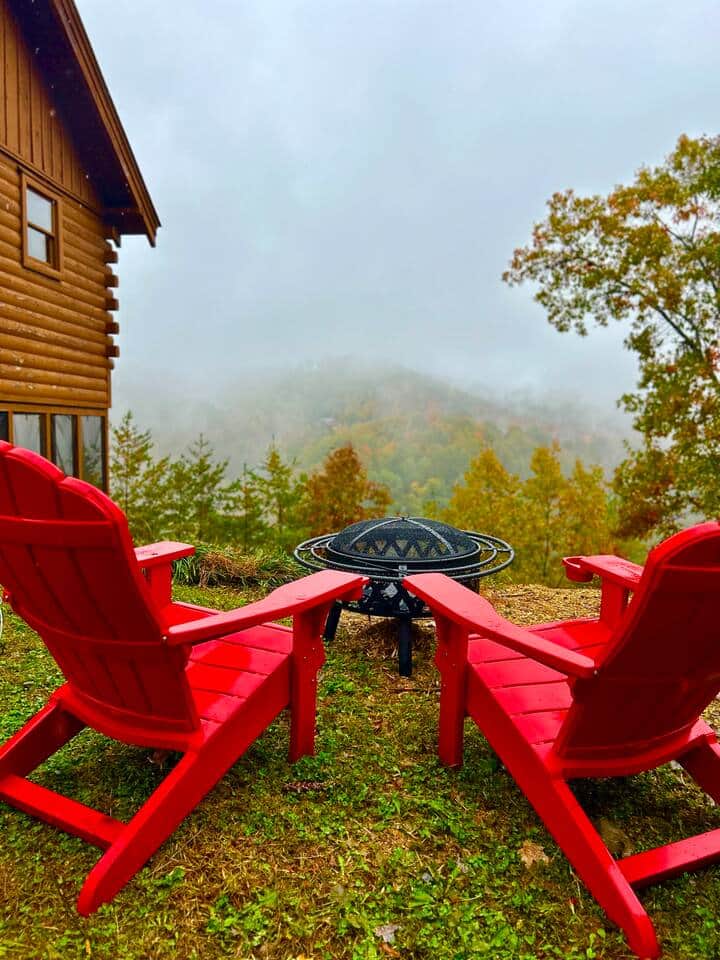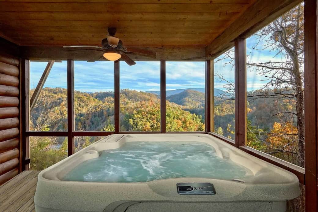 Escape to this 2-bedroom cabin in Wears Valley with 280° Smoky Mountain views, a hot tub, fire pit, and plenty of space for family or friends.
