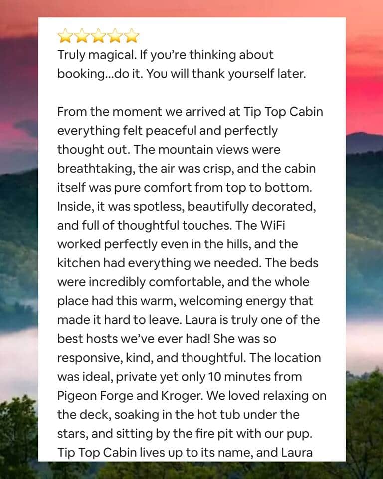Welcome to your Smoky Mountain Cabin- here is just some of what you can expect!